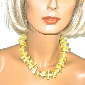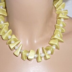 VTG CHUNKY YELLOW & PEARL LUCITE NECKLACE