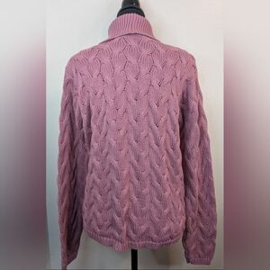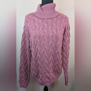 Description: VTG Wainscott Cable Knit Barbiecore Preppy Light Academia Cozycore Granny Chic Sweater MD, chunky cable knit throughout, ribbed high neck, textured with some weight, subtle shoulder pads