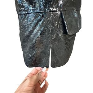 Vintage Y2K Carlisle Women's Size 6 100% Genuine Shiny Black Reptile Leather Collared Whimsigoth Punk Rock Gothic Button Down Vest