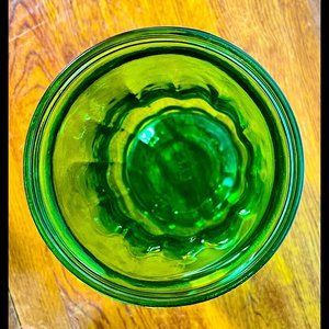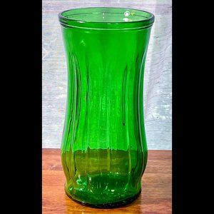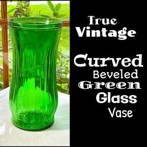 ▪️VTG▪️Curved Beveled Green Glass Vase
