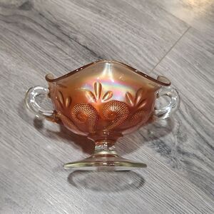 VTG Dungan Carnival Bon Bon Marigold Question Mark Handle Pedestal Dish, absolutely flawless. This will be carefully packaged for shipping. Great quality and beautiful for candy, decor and jewelry catchall dish.