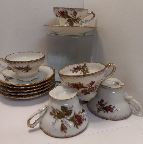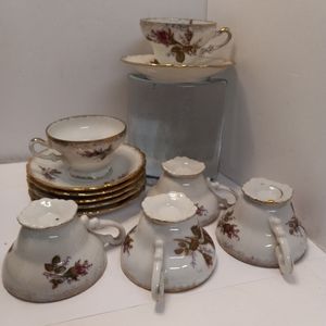 This pretty 12 piece Moss Rose China Tea set includes:
