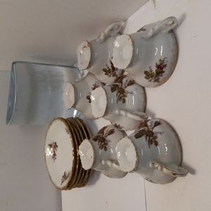 * 6 Moss Rose Teacups