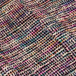 A stunning piece with a symphony of colors and textures including some metallic threads woven together in a classic silhouette.