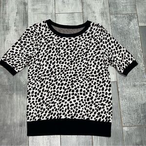 Ellen Tracy black Ivory Brown cheetah print Ribbed Round Neck and 3/4 Short Sleeve Tight Thick Knit Crew Neck Sweater M
