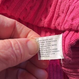 VTG-Gap-size M-hot pink-crewneck pull over cable sweater with ribbed details on sleeves, neck and bottom. 96% cotton, 1% Lycra, 3% other fiber. Seems like a small medium to me. I would say it’s a small ,please see photos for approximate flat measurements.