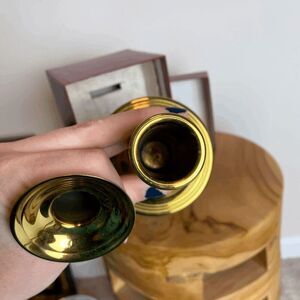 Timeless and elegant, this vintage Gorham brass candlestick brings warm sophistication to any space. Featuring a removable inner brass disc, the design allows you to display your candle at two different heights — flush within the holder for a sleek, low-profile look, or elevated for a more traditional silhouette.