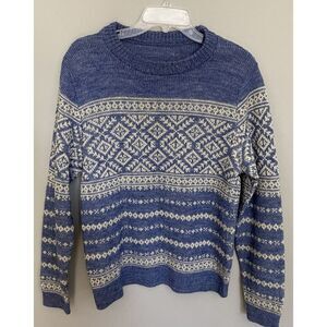 VTG Handkint 100% Virgin Wool Sweater Snowflake Holiday Med Large Unisex