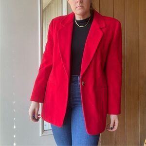 VTG Harvey Bernard Heavy Weight Singe Button Red Wool Cashmere Blend Blazer - SZ