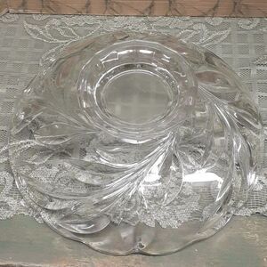 Punch Bowl, Centerpiece Bowl, Bowl, Dessert Bowl, Fruit Bowl. 4.5" Depth. 12" round. Decorative, Etched. Scalloped top edge.
