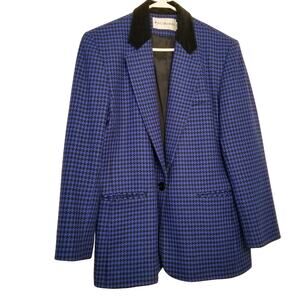 VTG-JH Collectibles Women's Blue/Black Houndstooth Long Sleeve Wool Blazer Sz 12