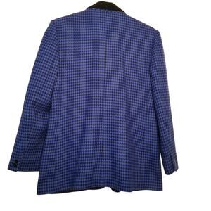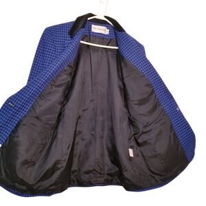 VTG-JH Collectibles Women's Blue/Black Houndstooth Long Sleeve Wool Blazer Sz 12, Material-Shell-100% Pure Wool; Lining-100% Acetate; Care - Professionally Dry Clean; Made in USA; Single Breasted, Velvet Collar, 3 Outside Pockets, Pointed Velvet Collar, 2 Buttons at sleeve ends, Fully Lined, Long Sleeves, Shoulder Pads;