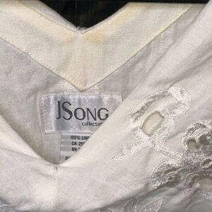 VTG JSONG Linen Sun Dress Lace and Eyelet Embroidered Boho Cottagecore Sz 14 Cream
