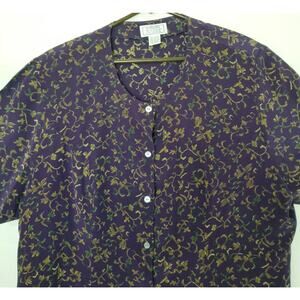 Jennifer Moore For Women Purple Vine Pattern - Size 20W; Material - 100% Silk; Care - Dry Clean Only; Made in China; Short Sleeve, Button Up Front, Round Neckline, 3 Inch Slits front, back & Side Seam, Shoulder Pads,