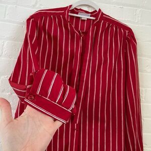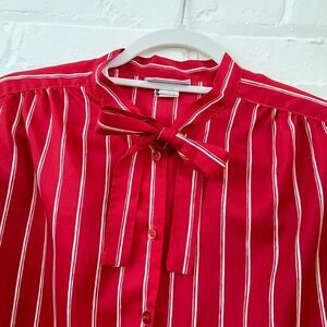 VTG Koret 70s / 80s Tie Neck Red Striped Buttondown Blouse Office Basic