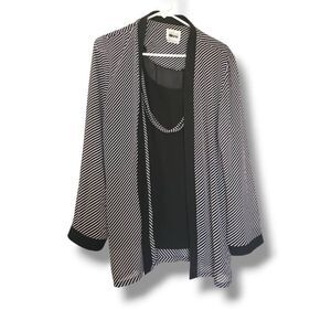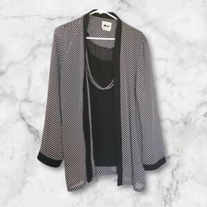 Vintage Leslie Fay Womens Black Striped Stretchy Open Front Kimono with attached Tank sz 16 Chic Minimal Career