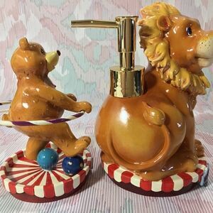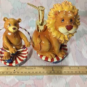 VTG Lion figurine Shampoo/Soap/Lotion Bottle with Hoop And Bear Bath