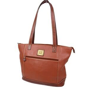 VTG MEDALLION BROWN GENUINE LEATHER ZIP SHOULDER BAG HANDBAG TOTE PURSE + POUCH