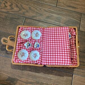 VTG,Madeline Porcelain & Wicker Tea Set Picnic Basket For Kids