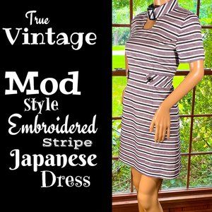▪️VTG▪️Mod Embroidered Stripe Japanese Dress