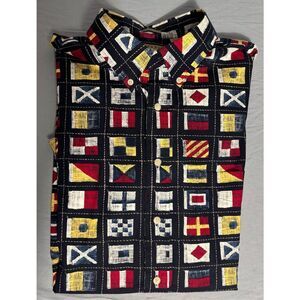 VTG Natural Issue Wrinkle Free Hawaiian Shirt Men XLT TALL Flags Design