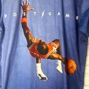 Vintage Post Game Shirt Men's Blue Michael Jordan Dunk All Over Print S Small. the Post Game Are Raised Letters on the Front