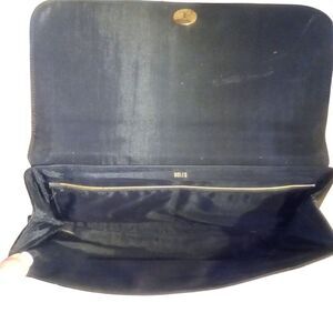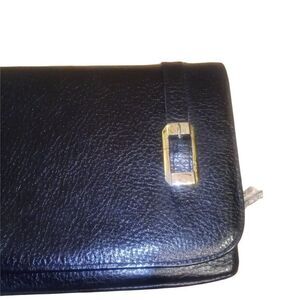 Beautiful vintage black clutch from Rolf's. Gold tone ornamental buckle accent. Snap closure. Fully lined. Two interior pockets. Some wear on snap closure and inside flap. Otherwise excellent condition. Nonsmoking home.