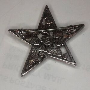 VTG Stamped Metal Shooting Star Silver Tone Brooch Pin W Rhinestones 1980’s