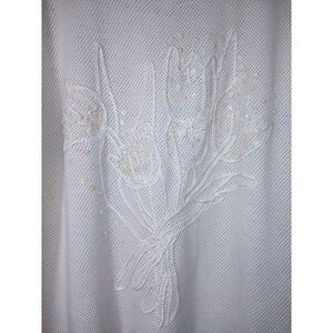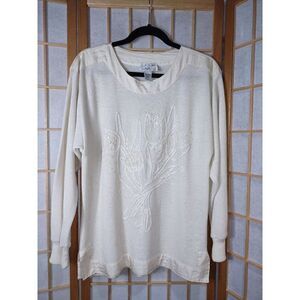 Classic vintage cream embroidered and sequined floral top from Stephanie. Size medium. Mixed materials. Made in Hong Kong. 62% polyester, 33% polyester, 5% silk. Hand wash. Excellent condition. Nonsmoking home.