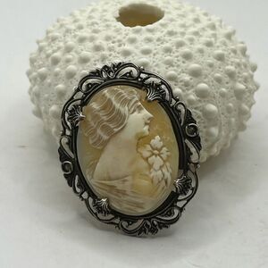 Stunning VTG carved shell sterling cameo. In excellent condition. A great addition to your collection