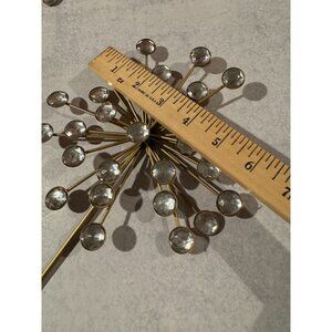Bring a touch of Mid-Century elegance into your home with this striking pair of starburst crystal wall hooks. Think of the Atomic Age glamour—each hook’s radiant burst of prong-set crystals reflects light beautifully, while the brass metal finish whispers of timeless style. These aren’t just hooks—they’re artful statements, perfect for your entryway, bathroom, or bedroom.