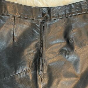 Trust me when I say this is soo cute & such a sexy fit! There’s a good possibility it was a longer skirt and cut to be a mini, but the inside lining is hemmed, there are two little pieces of leather could be additionally tacked at the hem, but other than that it’s in great condition and super cute!