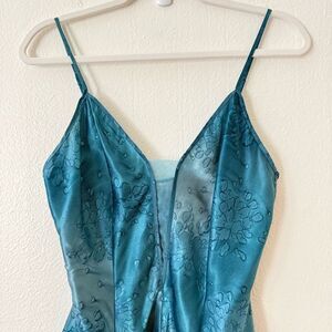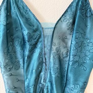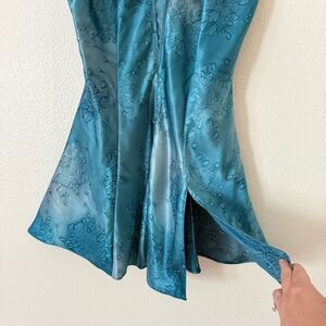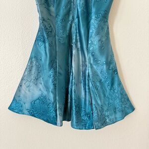 VTG Victoria's Secret Women's Small Gold Label Blue Floral Satin Mini Slip Dress
