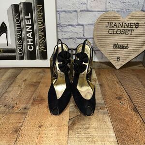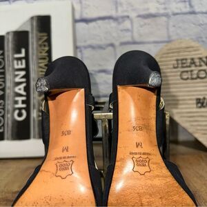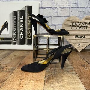 VTG YSL Shoes 8.5 Black Satin Pumps Vero Cuoio Made In Italy Vintage