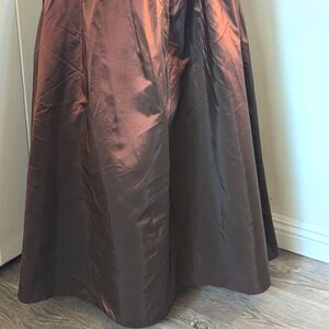Description: Vintage Pantagis 11/12 Strapless Chocolate Brown Velvet Ballgown Whimsigoth Fairy Grunge Couture, beautiful, dramatic velvet top, full copper skirts with tulle underneath, concealed back zipper, belt is missing but belt loops are still in great condition, made in the USA, note that vintage 11/12 may vary from modern day 11/12