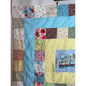 VTQ Patchwork Quilt Top Layer Mariner Sailing Ship 54x54"