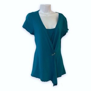 VTV Y2k Style & Co short sleeve style and co teal blue wrap shirt XL