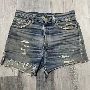 VTbiG Levis Patchwork Denim Shorts 1960s Big E Hippie Cut Off Jean Shorts 31