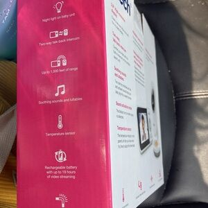 VTech fixed position video monitor with two-way talk-back intercom. Features a large display screen and soothing sounds.