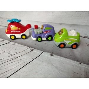 VTech Go Go Smart Wheels Lights & Sounds Convertible Hot Rod Racer Helicopter all tested and working in good condition.