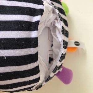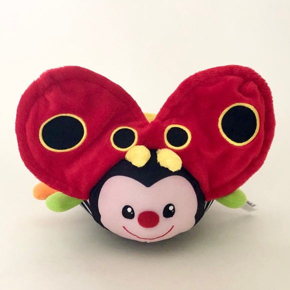 Lady Bug by VTech has 6 legs and flapping wings, making it easier for little hands to grasp. 3 shape buttons on the ladybug's back play sing-along songs introducing baby to numbers, shapes and colors. It encourages tossing, catching and plenty of learning fun especially when on-the-fly! It's equipped with a motion sensor to encourage toddlers to catch and throw the ball.