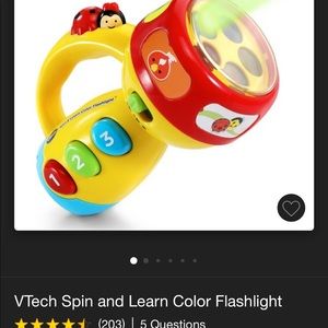 Your little one can play with this VTech Spin & Learn Color Flashlight to learn about animals, colors and numbers through songs and sounds.