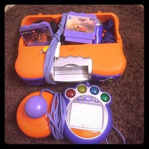 V-Tech V smile game console. Comes w/WALL-E & Cars games. Has wall plug-in & adapter cords