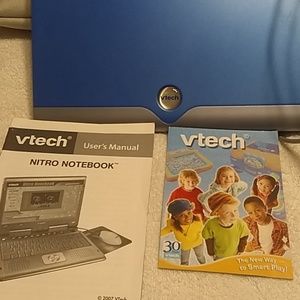 VTech computer for kids,comes with 2 extra VTech cartridges(story time and sing-along),has user's manual ,mouse pad and notebook carrying case. It works great : make an offer