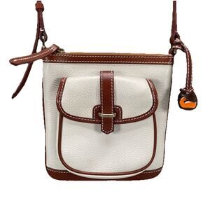 Vintage Dooney & Bourke Pebbled Leather Cream/Brown "Letter Carrier" Crossbody Charm All Weather Leather