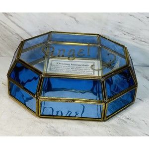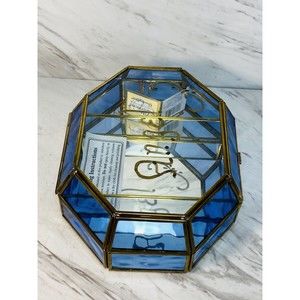 VTg Handcrafted Blue Glass Box Jewelry With MIRROR BASE NEW 8”x6”x3”