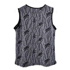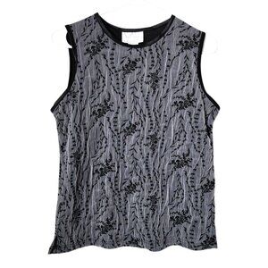 VUE POINT VINTAGE 90s Crinkle Mesh Sheer Tank Top Black Floral Overlay S