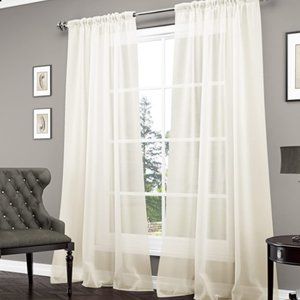 NEW AND NEVER USED Vue sheer panel ivory curtain comes in ivory color. For sale is two panels and it measures 59x84". This is still in package and has never been used. Have also cute Mandela pattern with beige and white that would go well with these. Will bundle with awesome deal!