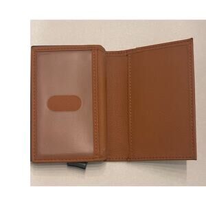 • Features: Pop-up card ejector, RFID blocking (per brand), clear ID window, slip pocket, bi-fold, slim front-pocket friendly