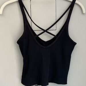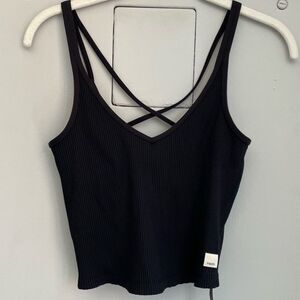 VUORI Black Ribbed Criss Cross Tank Black Large